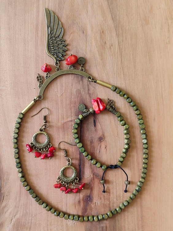 ست زیور سنگ مرجان و برنز« پرواز جاودان» | روشینا