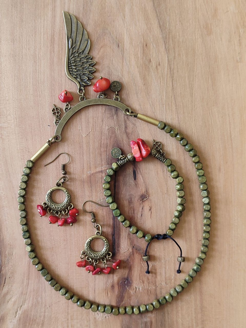 ست زیور سنگ مرجان و برنز« پرواز جاودان» | روشینا۲٬۰۰۰٬۰۰۰ 12%